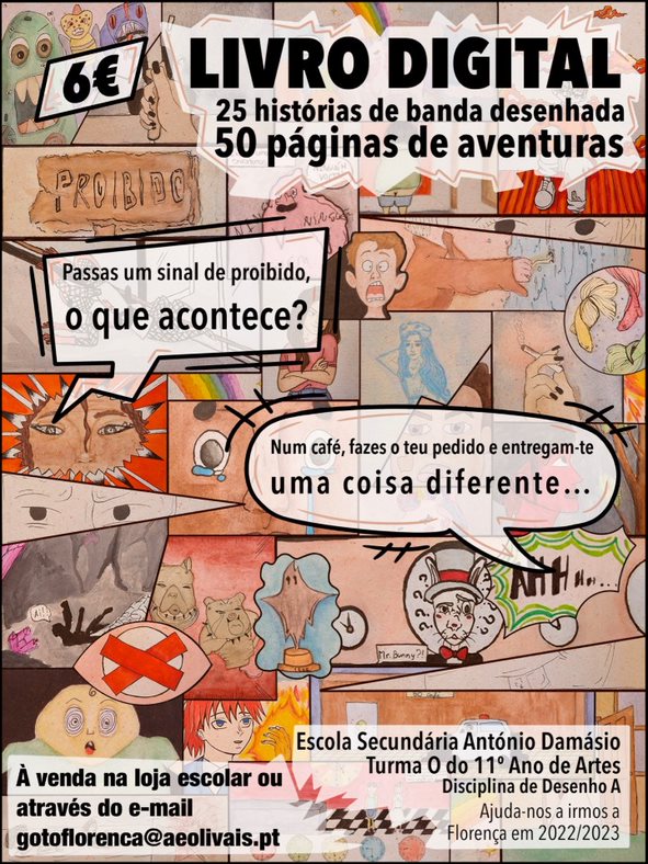 Com o objetivo de angariarmos fundos para, no próximo ano letivo, realizarmos uma visita de estudo a Florença, realizámos um livro digital de banda desenhada na disciplina de Desenho.