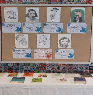 Para celebrar esta efeméride, foi realizada na Escola Secundária António Damásio uma exposição, destinada a toda a comunidade escolar, com retratos/caricaturas de escritores ilustres portugueses, inclusivamente do nosso patrono, António Damásio. Tais retratos foram desenhados pelos alunos da turma 11ºP (Artes) e foram acompanhados de frases emblemáticas desses mesmos autores. Em articulação com a Biblioteca Escolar da AESMO, foram, ainda, expostos alguns dos livros da autoria dos escritores retratados.