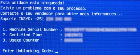 Quando o equipamento é bloqueado surge uma imagem semelhante à seguinte: